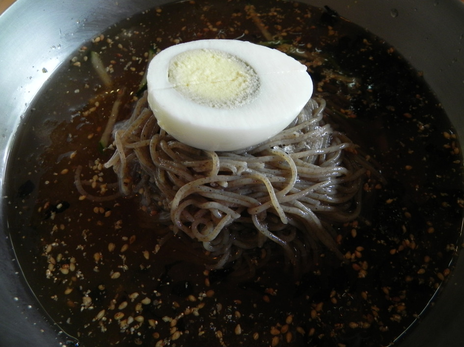 江原)·ヒョソク村ろくろバンアガン横。クールそばうどんの一種の味〜平昌蓬坪フル香り!